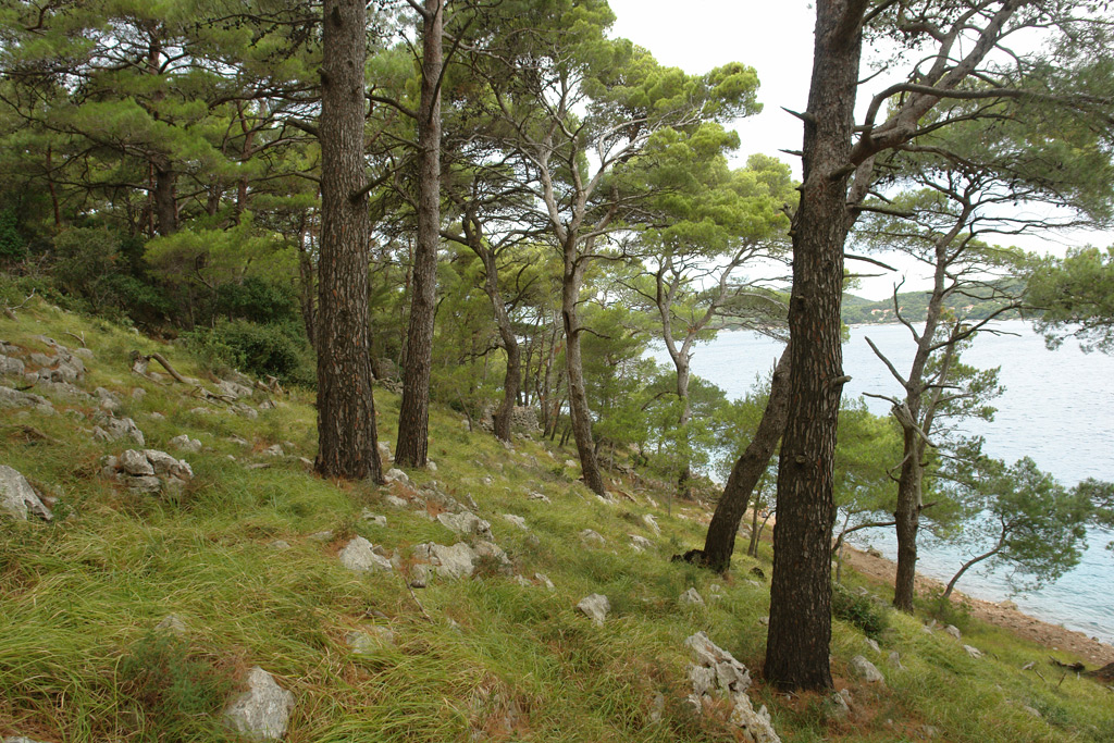 Passiamo la notte in questa splendida pineta. Le pinete di solito sono molto spoglie sotto gli alberi, mentre qui è tutto verde grazie a questi splendidi ciuffoni d'erba, non so perchè qui ci cresce l'erba, ma è davvero bello.
