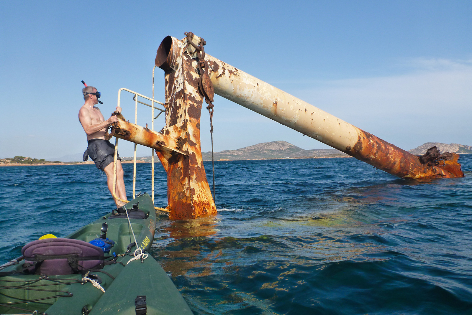 Partiamo e ci fermiamo al relitto. E' affondato molto di più rispetto a ciò che avevamo visto nel giro in kayak del 2015.