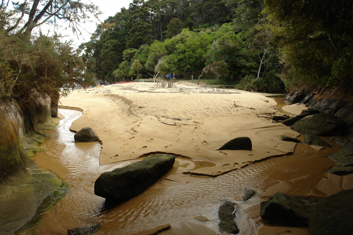 Nell'Abel Tasman National Park si può campeggiare solo in alcuni posti. Eco-zorro ci ha prenotato i più fichi, quelli in cui si arriva solo dal mare.