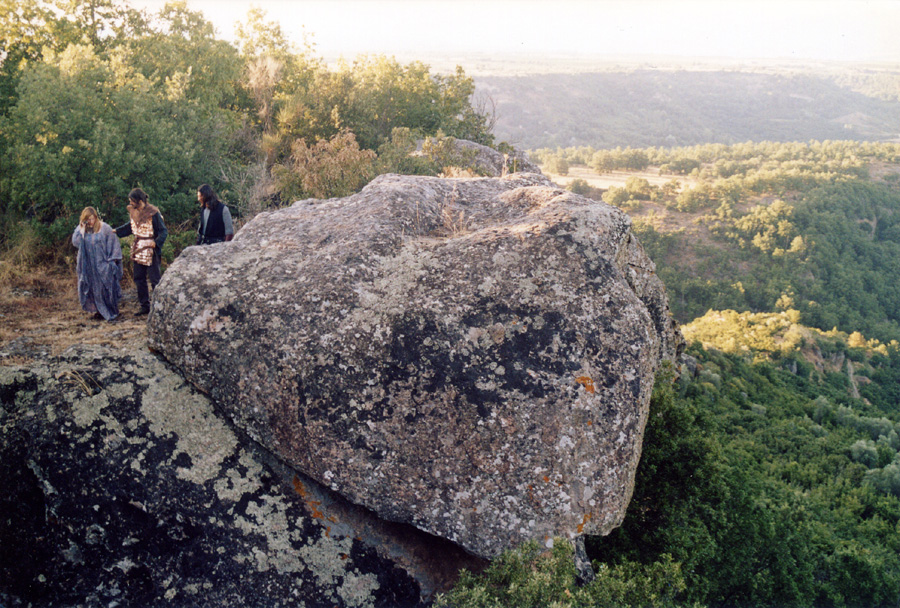 In realtà il Sasso del Predicatore offre troppo poco spazio sulla cima per poter gestire le riprese. Così decidiamo che ciò che si svolge sopra sarà girato su questa roccia a poche centinaia di metri di distanza, ma con tutte le caratteristiche che ci servono ed un panorama meraviglioso.