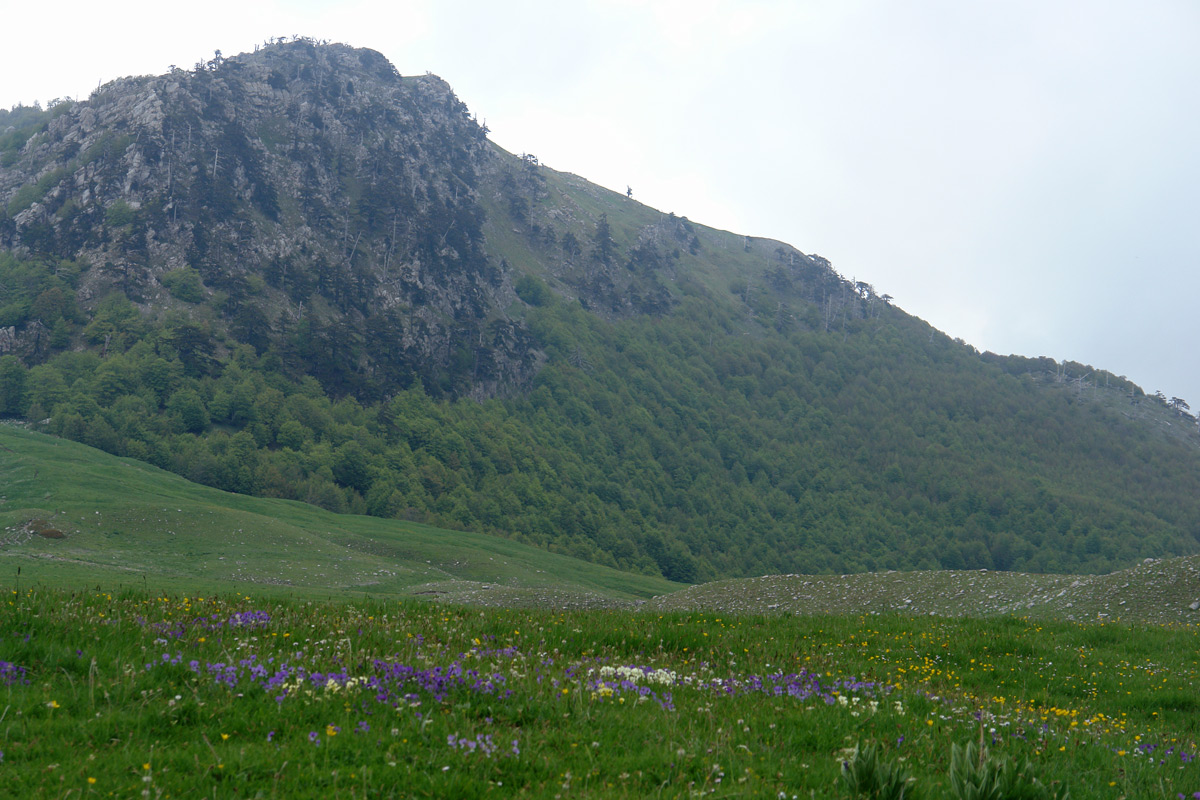Comincia a pioviccicare, i monti scompaiono fra le nuvole, ci mettiamo la giaccavvento e decidiamo di scalare quel picco roccioso laggiù, è l'unica meta godibile, il resto è tutto dentro le nuvole sempre più fitte.